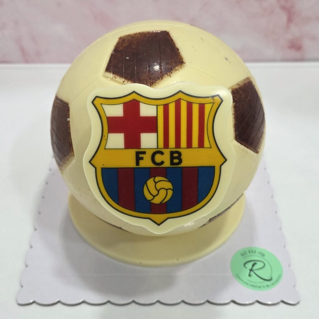 Un balón de chocolate blanco de 15 cm y 450 g, pensado para sorprender y disfrutar desde el primer momento.